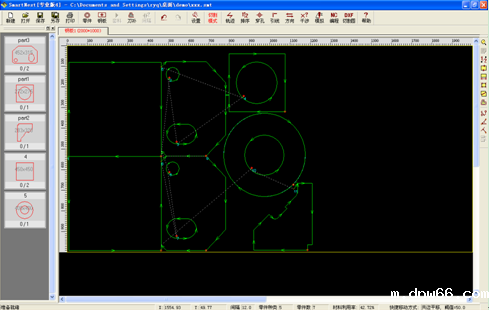 4、可以直接导入外部DXF/DWG格式的排料图进行切割路径优化和NC编程,并可将整张排料图自动拆解成单个零件,从而利用本软件对原排料图进行修改或重新套料。